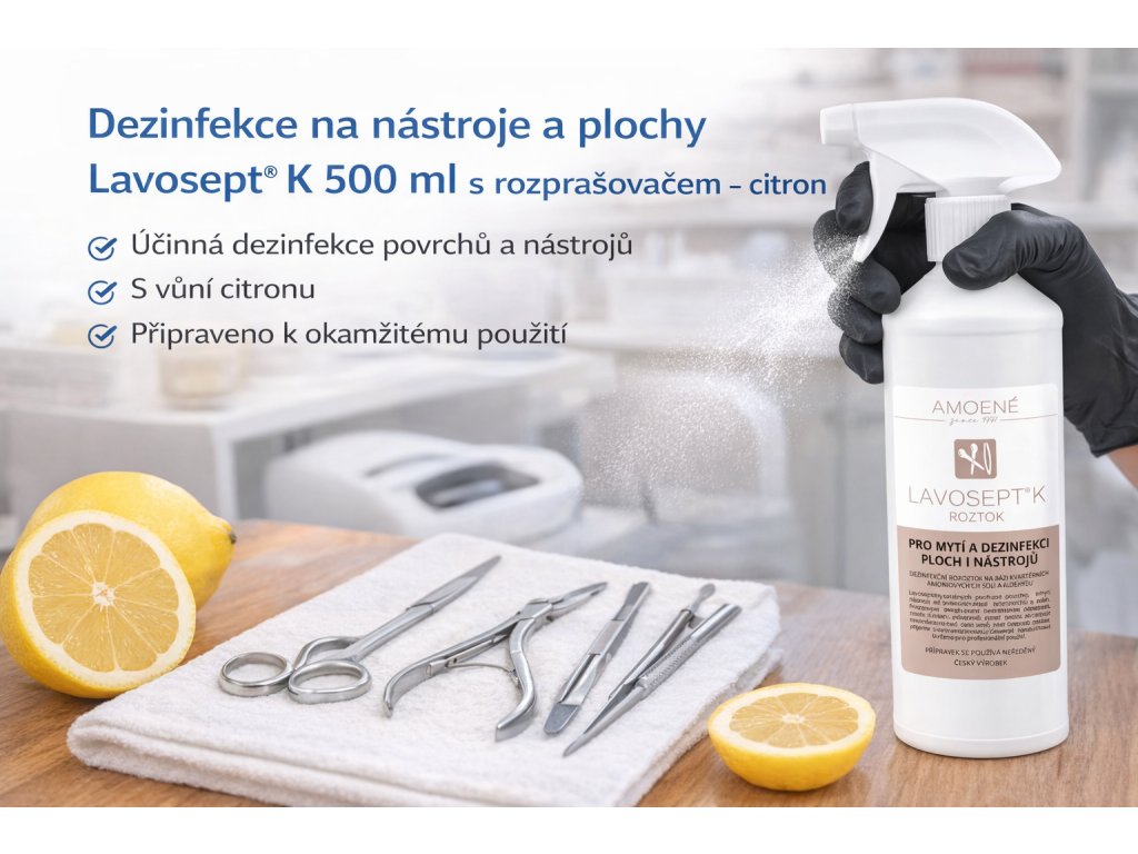 Dezinfekce na nástroje a plochy Amonené Lavosept 500 ml s rozprašovačem – citron