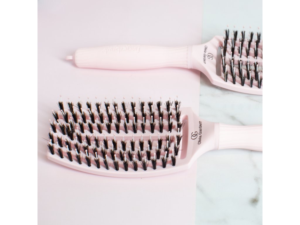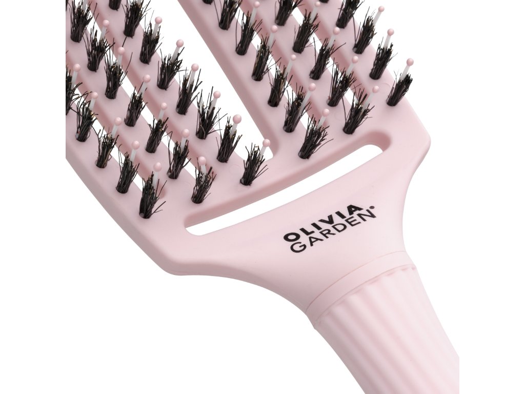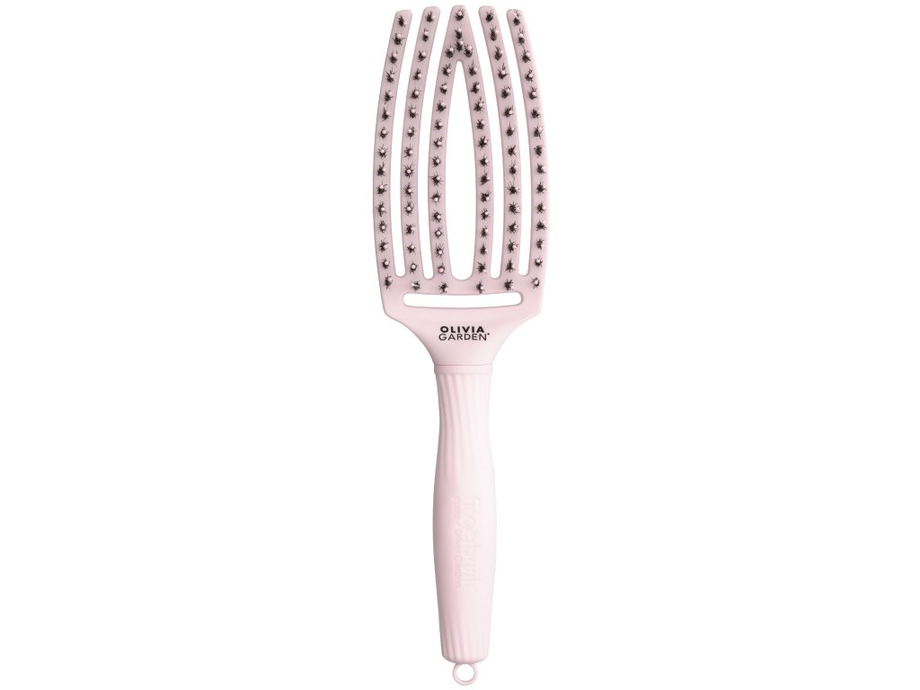 Rozčesávací kartáč Olivia Garden Fingerbrush Care Iconic Boar & Nylon Pastel Pink M - pastelově růžový