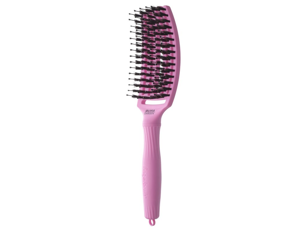 Kartáč na vlasy v limitované edici Think Pink 2025 Olivia Garden Fingerbrush Combo Medium Pink Tokyo - tokijská růžová