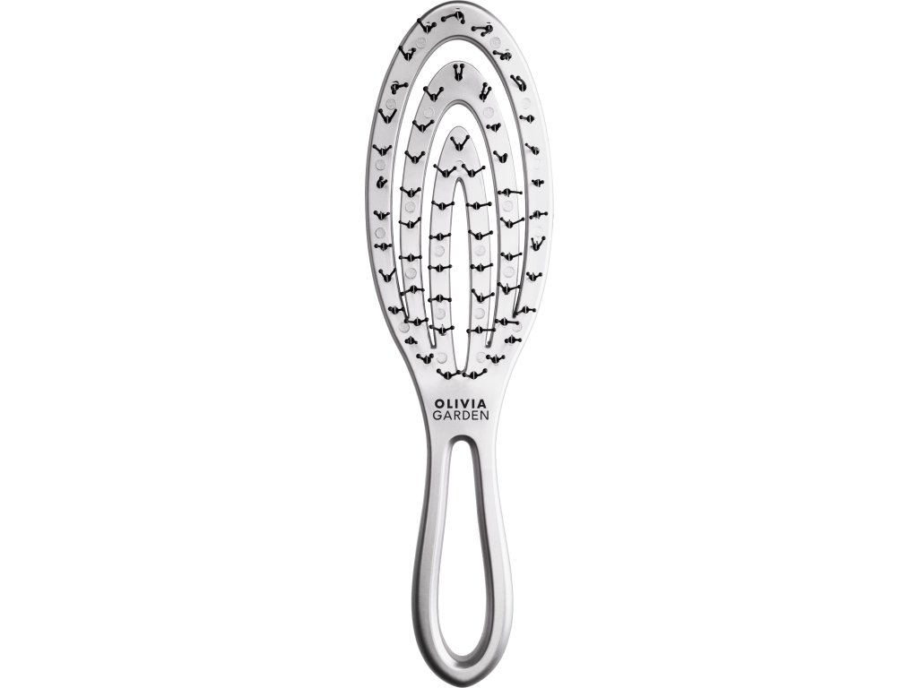 Rozčesávací kartáč na vlasy se zaobleným tělem Olivia Garden Fingerbrush Holiday 2025 Silver Snow - stříbrný