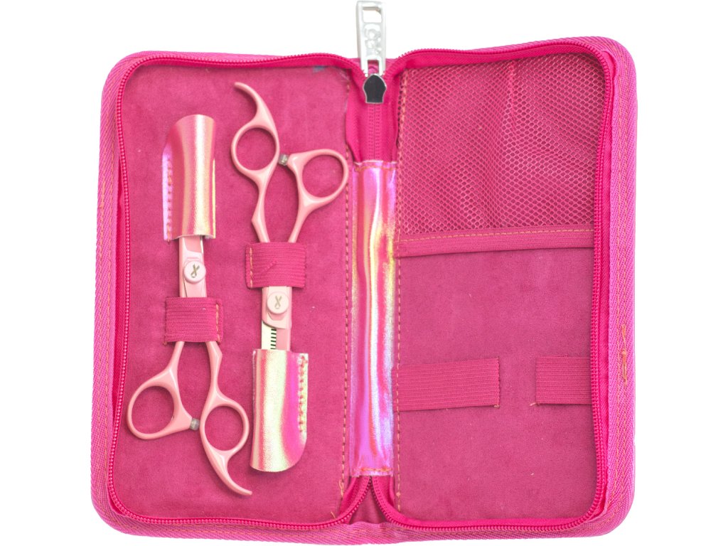 • Šroub umožňuje nastavení napětí čepelí podle preferencí uživatele, čímž zajišťuje hladký a přizpůsobitelný chod nůžek. Imitace briliantu v růžovém provedení dodává nůžkám luxusní a elegantní vzhled.